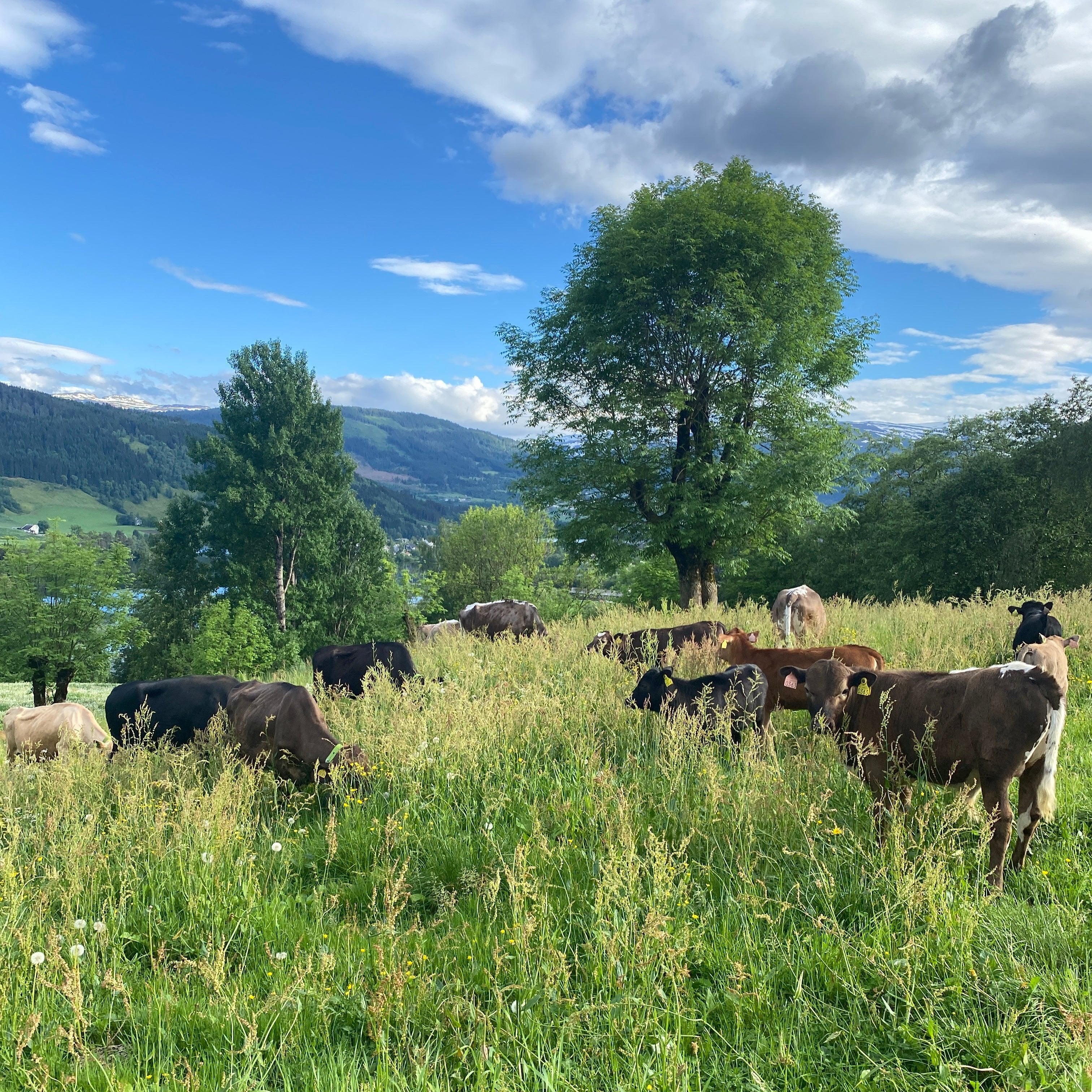 Me har ein liten flokk med den lokale og utrydningstruga rasen Vestlandsk fjordfe, og driv økologisk og etter regenerative prinsipp.